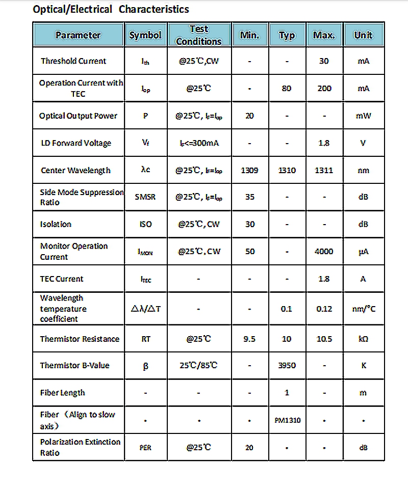 1309nm-1311nm +1310nm+20mW+DFB+Butterfly+Modules+with+PM+Optical+Fiber+