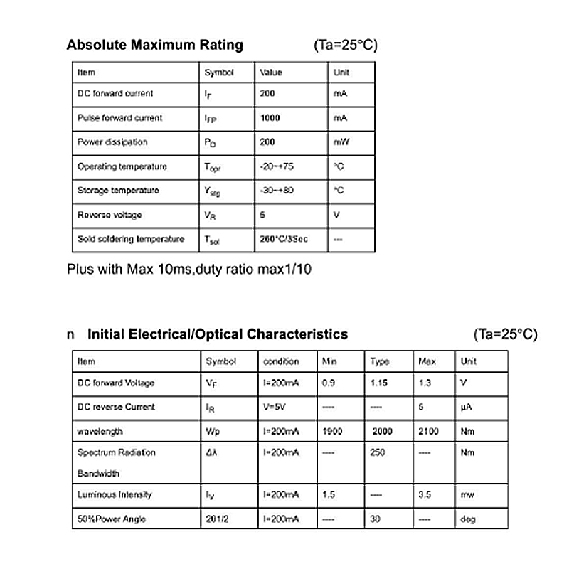 Pulse forward current : 1000 mA