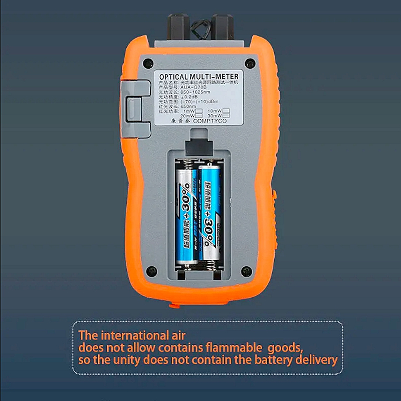 - The optical fiber tester operates with a clear display and durable housing for extended use in various network maintenance scenarios.