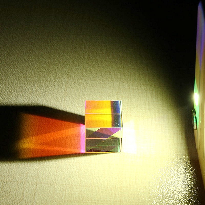 The laser beam combiner cube prism works by reflecting the incoming laser beams off of the coated surfaces at precise angles, causing them to combine and exit the prism as a single beam. The precise angles and coatings used can vary depending on the specific application and the wavelengths of the laser beams being used.