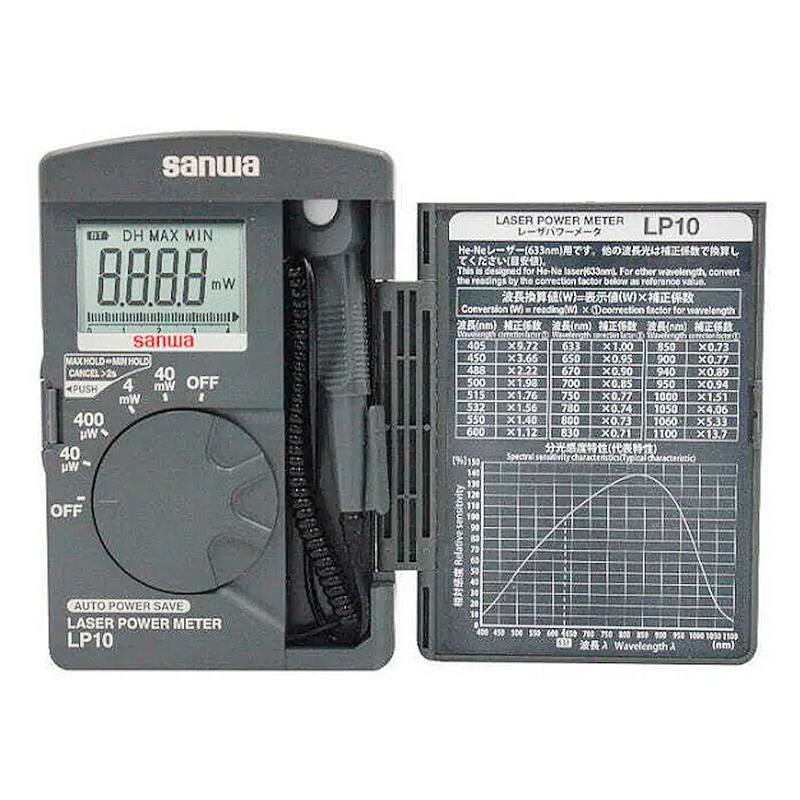 Using 633 nm of a He-Ne laser as the reference wavelength, this instrument enables direct reading of the optical power of visible-range laser light from a visible laser source – pointer, DVD player’s optical pickup, etc. The power of other wavelengths can also be measured by converting the reading according to the spectral sensitivity characteristic table (typical values).